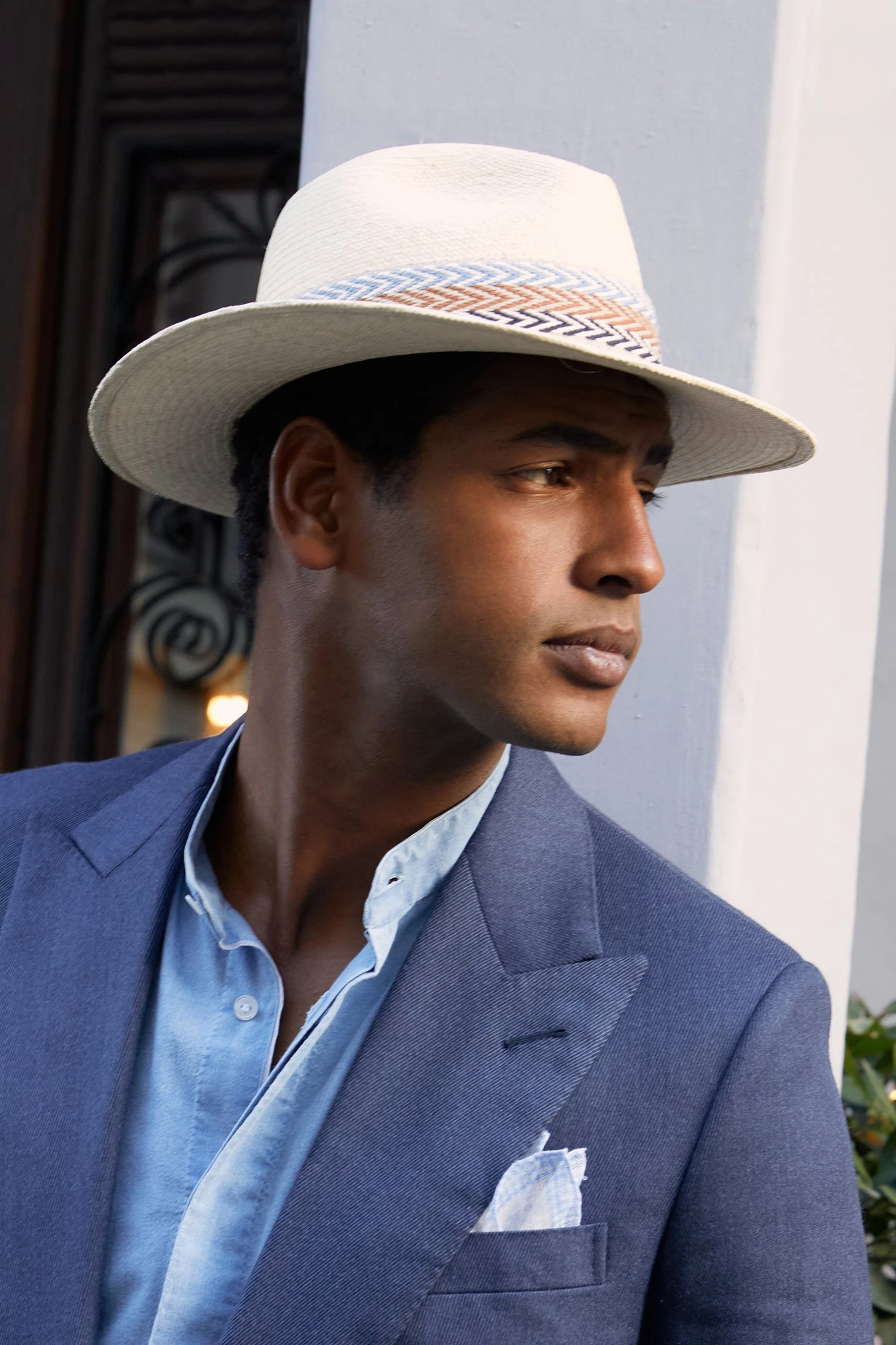 The Walter Panama is a traditional Panama hat style reimagined. It has a wide brim and is crafted in a coarse weave from Ecuadorian toquilla straw. Each piece is handmade in Ecuador.
